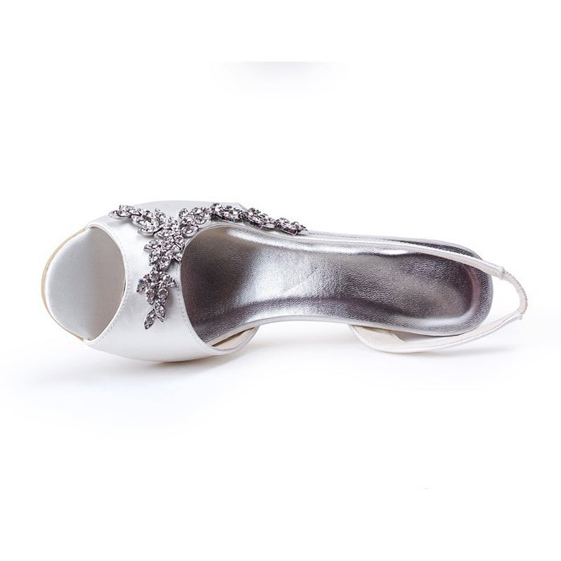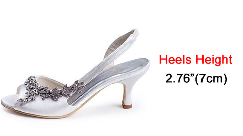 This wedding sandals features leaf rhinestones, silk upper and stiletto heels is cute and fashionable. The white sandals make you more beautiful with your stunning wedding dress. It's very easy for you to keep balance as the stable heel design.