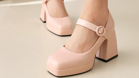 This platform loafers features patent leather, square toe and chunky heels. It makes you look elegant and fashionable with your party dress. The heel height is 3.54"(9cm), the platform height is 0.79"(2cm).