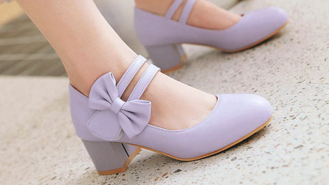This velcro chunky heel loafers designed to slip on easily. The bowknot makes you look more elegant and adorable with your dance dresses. The medium heel 1.97"(5cm) is easy for you to keep balance and walk.